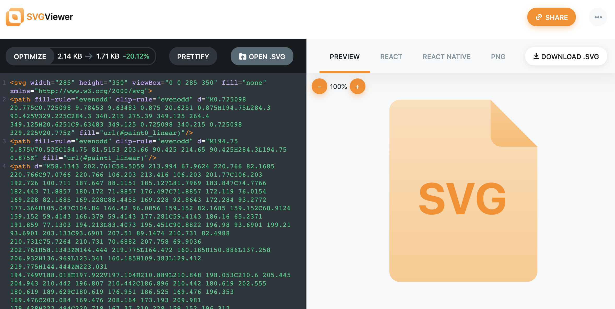 可视化 SVG,并支持压缩图片、转化为 React/RN 组件、转化为 png 格式的图片等